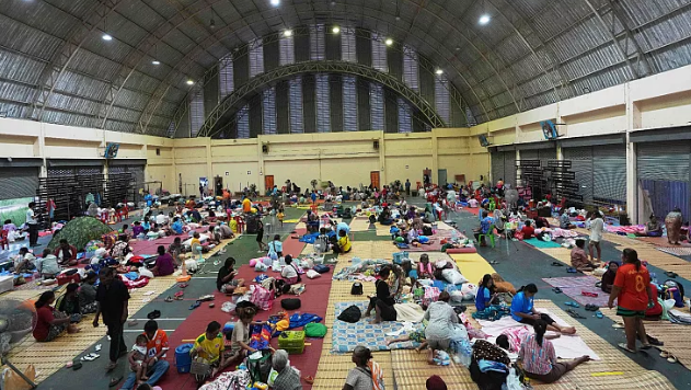 Thai residents who fled homes following clashes between Thai and Cambodian soldiers rest at an evacuation center in Surin province, Thailand, Friday, July 25, 2025. AP Photo/Sakchai Lalit